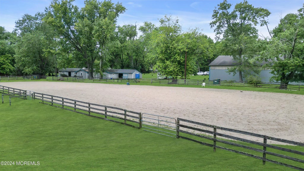 ***1 YEAR HOME WARRANTY PLAN INCLUDED TO BUYER*** 10+ ACRES!!! Welcome to the boutique equestrian center, Bountiful Blessings Farm, situated on 10.5 ACRES of verdant acreage, centrally located in Howell Township! This truly charming HORSE FARM PROPERTY has been an iconic venue on the Monmouth Country equestrian scene for decades with a tradition of excellence in dressage showing & training. This turn key FARM ASSESSED PROPERTY is an amazing opportunity for a professional trainer or amateur equestrian with the ability to host a variety of equine disciplines --- currently used as a dressage training center and host property for recognized & schooling dressage shows. Trot over to the true blue ribbon of the equestrian facility...the professionally installed 90 x 132 INDOOR ARENA with state of the art footing---featuring a 66 x 132 riding area & adjacent storage area for up to 12 additional box stalls. Do not miss the maintained OUTDOOR ARENA which exceeds regulation dressage dimensions & features a judge/official stand for hosting horse shows. The nostalgic HORSE BARN hosts 11 generous stalls & features feed room area & tack room. Lush fenced paddocks & grazing pastures across the property create an incredible haven for any horse. The rocking chair front porch is an inviting feature of the charming 3 bedroom, 1.5 bath FARMHOUSE with views of pasture & greenery from every direction. Step into a home that is refreshingly bright & airy, featuring a delightful lower level which flows to combines the living room/office w/ wood burning stove, sitting area, dining room, eat-in country kitchen & powder room. A space of pure enjoyment for relaxing & entertaining! The cozy second floor includes 3 bedrooms & an updated hallway full bath with soaking tub & shower stall. The tranquil acreage creates a secluded setting to relax outdoors which includes a patio & terrace overlooking the equestrian elements. An above ground pool is included to float away the summer days. Quiet country living in a tremendous location! *Bonus* NEW septic system installed. *Bonus* Freshly painted home. For those seeking to expand on their agricultural endeavors, this FARM ASSESSED property could easily blend in herbary or apiary activities as well as small livestock. For outdoor enthusiasts, revel in the surrounding beauty of the natural wildlife and environmental habitats of the nearby Manasquan Reservoir, a gem of the Monmouth County Park System. An abundance of open space yet still close to major conveniences such as commuter access to greater Manhattan/NYC as well as proximity to the Jersey Shore! Experience the pure charm of this enchanting horse farm!