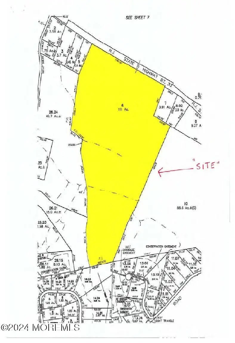 111 +- acres, zoned PCD ( Planned Commercial Development) the permitted use for offices, retails, storage warehouse & distribution centers...... On Route 33 in Millstone. 1,761SF of frontage. Less than 4 minutes to NJ Turnpike - Exit 8. Close to I-195, Route 130, Route 9, I-295 Popular area continues to be built up with new homes & commercial developments nearby. Great visibility !