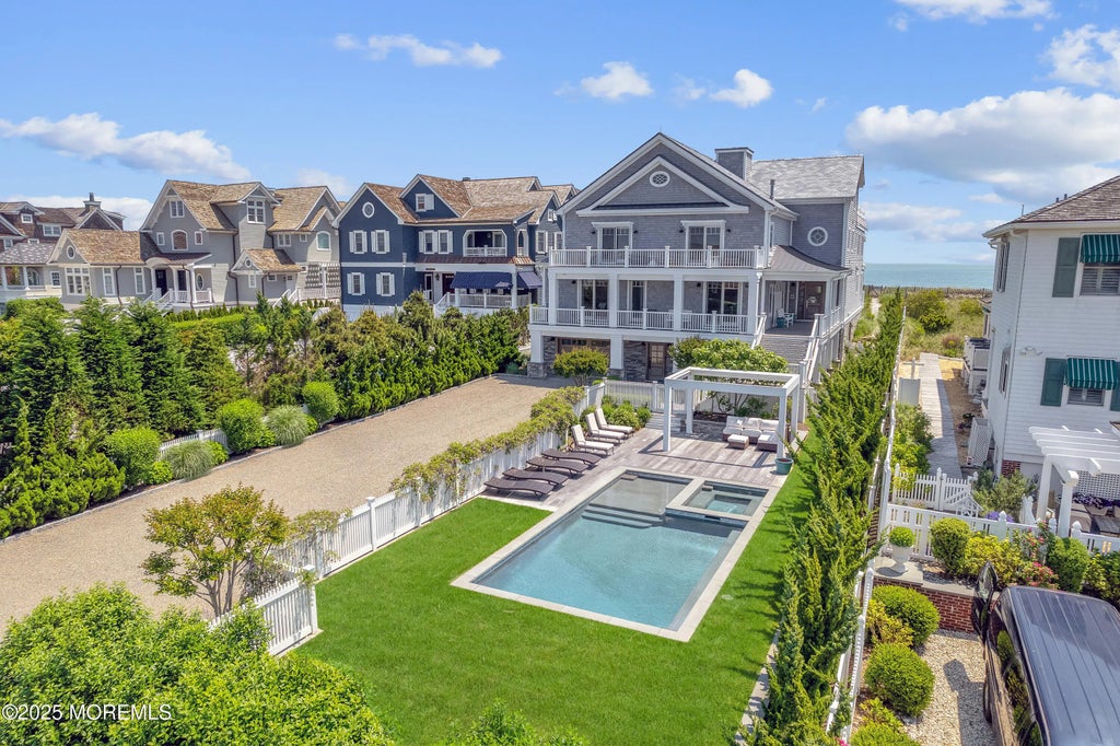 An extraordinary opportunity to own one of New Jersey's most prestigious oceanfront estates. This custom-built, 9,000 sq ft home offers sweeping ocean views and refined luxury throughout. With 12 bedrooms, 8.5 bathrooms, and a private elevator, the residence blends timeless elegance with cutting-edge convenience. The sun-drenched main level features expansive living and dining areas with floor-to-ceiling sliders, a gourmet kitchen with premium appliances—including 3 refrigerators, 2 ovens, pizza and warming ovens, dual dishwashers, and a full butler's pantry—and multiple entertaining spaces, including a wine bar, pool table, and media room. The home boasts radiant heat throughout the first floor and all bathrooms, plus four master suites with en-suites and fireplaces, three of which enjoy ocean views. Smart home technology includes a Generac generator, central vacuum, security and leak detection systems, and a Polygem roof engineered for high winds. The third floor offers a vaulted-ceiling entertainment space, bunk room, wet bar, and expansive decks with panoramic ocean and bay views. Retractable awnings add comfort on sunny days. Outdoors, enjoy a private, heated saltwater pool and spa, deck lighting, and a Sonos sound system. The professionally landscaped grounds include multi-level decks, a pergola with a retractable awning, and a private beach overlook. Additional features include dual outdoor showers, multiple laundry areas, a home gym, office, and more. This is a rare oceanfront sanctuary with every imaginable amenity. Private tours and a full feature list available to qualified buyers.