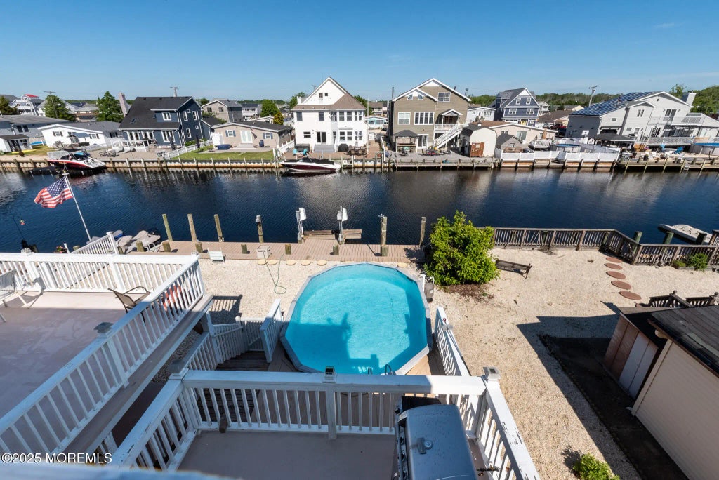 Welcome to waterfront living at the Jersey Shore, only 10 minutes by boat to the Open Bay! This 4bdr Cape Cod style home is located on a quiet culdesac street with an oversize paver driveway, large enough for multiple vehicles. The interior has some recent upgrades including updated bathroom newer flooring, lighting and has been freshly painted. Step outside to an oversize deck overlooking the lagoon with a pool, hot tub, outside shower and a boatlift for your outside entertainment. There is a half bath in the garage and this home has been lifted for added security. Take a tour today and enjoy Waterfront living in the desirable Berkeley Shores Community. No bridge obstruction.