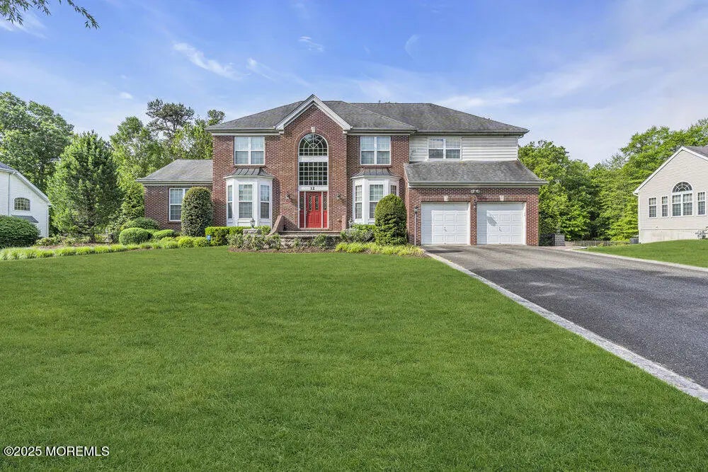 Back on the Market! Located in desirable Manalapan Estates, this stunning brick-front home features 4 bedrooms, 3.5 baths, and a finished basement with a full bath, built-in bar with sink and fridge, theater area, and gym. The oversized .6 acre property backs to protected woods with privacy landscaping and a fenced yard. Enjoy the expansive paver patio with built-in outdoor kitchen—perfect for entertaining. Inside boasts a 2-story family room with gas fireplace, first-floor office, and a sunlit bonus breakfast room. The kitchen offers 42'' cabinets, granite counters, center island and a serving station with extra cabinetry. Beautiful landscaping and an expanded front paver entry complete the picture of luxury and ambiance!