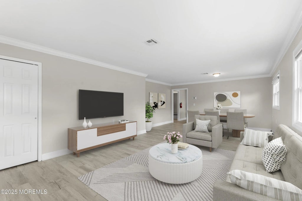 Rare Opportunity in Holiday City Berkeley - 3 Bedroom, 2 Full Bath Home. This beautifully maintained home offers excellent curb appeal, featuring manicured landscaping, vinyl and brick siding, and a welcoming front porch with convenient access to the one-car attached garage. Step inside to a spacious living and formal dining room combination. The kitchen is equipped with stone countertops, a center island, laminate flooring, a dedicated eat-in area, and stainless steel appliances. The generous primary bedroom includes a en-suite bathroom and private entrance. Additional highlights include a private rear patio with an awning, partial fencing, and mature trees for added privacy. This is an AS IS property.