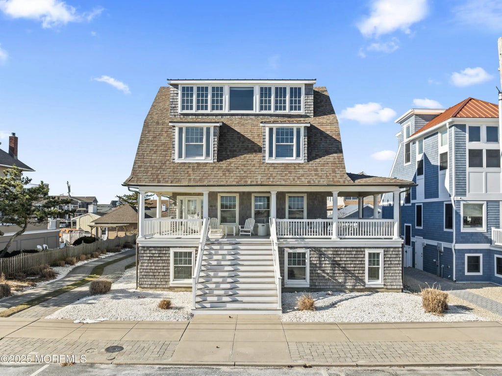Exquisite Oceanfront Living at Its Finest! Step into the epitome of coastal elegance with this impeccably designed Hamptons-inspired beachfront estate—an idyllic year-round retreat or summer sanctuary offering an unmatched escape from the hustle and bustle of city life. Experience the kind of luxury and comfort typically reserved for five-star resorts, where every detail has been carefully curated for the discerning homeowner. Nestled right on the shores of the Atlantic, this breathtaking home offers a seamless blend of sophistication and serenity. Enjoy captivating ocean views and spectacular sunsets from three expansive outdoor living spaces, including a sprawling wraparound porch and two additional decks that bring the beauty of the water right to your doorstep. Inside, the residence is bathed in natural light, with airy, open-concept spaces that have been masterfully redesigned using the finest materials and finishes. High-end furnishings and lighting from Restoration Hardware create an atmosphere of refined luxury throughout. The grand living room features elegant chandeliers, a cozy fireplace, and ample space for both relaxation and entertaining. The chef's kitchen is a masterpiece, boasting gleaming marble countertops, top-of-the-line appliances, and all the amenities you could dream of. The opulent master suite is a true sanctuary, complete with a walk-in closet and an en-suite bathroom designed to indulge. Six beautifully appointed guest bedrooms provide ample space for family and friends, ensuring comfort and privacy for all. 4th floor all windows, oceanfront room is where you will find three single beds with ample space for additional blow up mattresses. The perfect spot for all the kids to hang and enjoy!