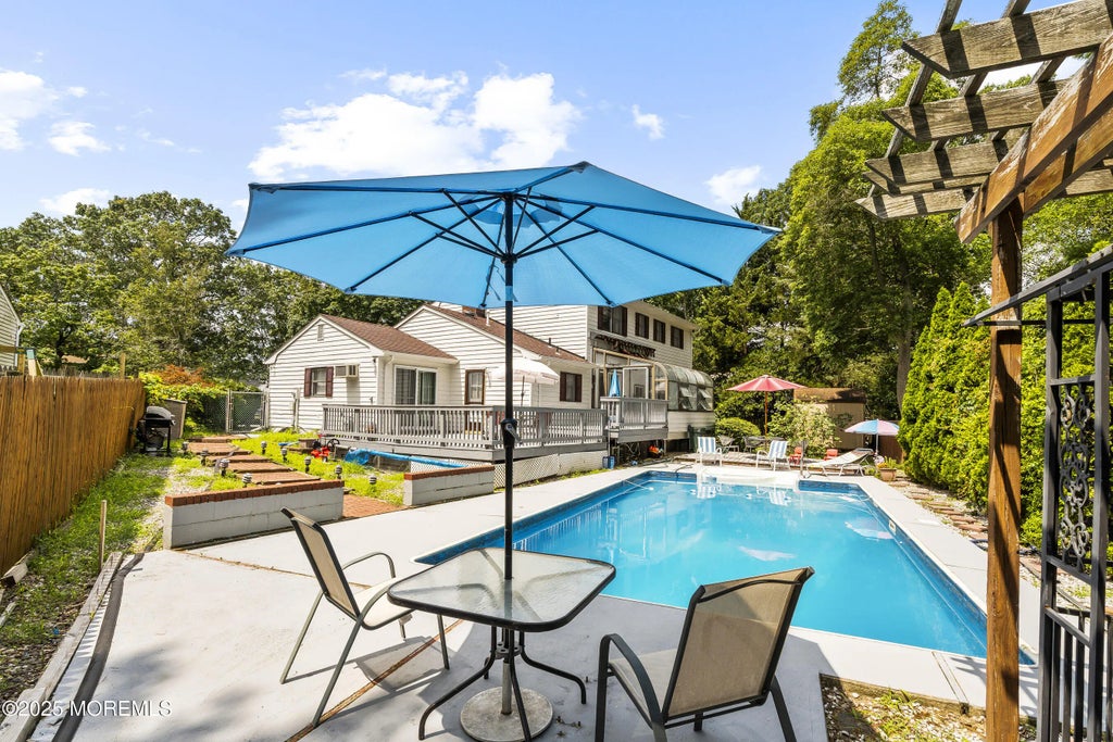 A Rare Find in Toms River! Spacious 4-5 bedroom home on a quiet cul-de-sac with a separate suite featuring its own heat & air—perfect for a man cave, in-law suite, or extended family. Cozy family room with wood-burning fireplace, hardwood floors throughout, tiled eat-in kitchen opening to a sunroom atrium. Triple-tiered deck overlooking a landscaped backyard with in-ground pool. Move in and start your dream life today—space, comfort, and backyard paradise all in one!