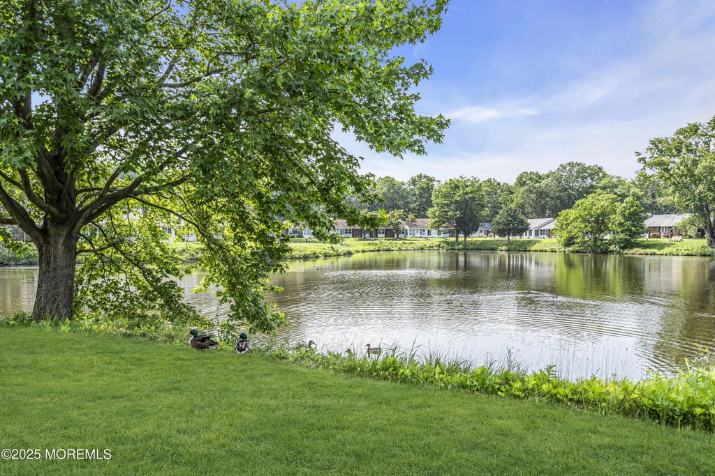 Prime waterfront ranch with 2 bedrooms, 1 bath, and attached 1-car garage in a serene Lakewood setting. Enjoy lake views, walking paths, and benches right outside your door. Features include an enclosed sunroom, spacious living room, eat-in kitchen, ceiling fans, and fresh paint throughout. Community amenities include two clubhouses, fitness center, activities, and a heated in-ground lap pool. Conveniently located near the Garden State Parkway, Route 9, Route 70, shopping, dining, and less than 30 minutes to Jersey Shore beaches. Grass digitally enhanced in select photos.